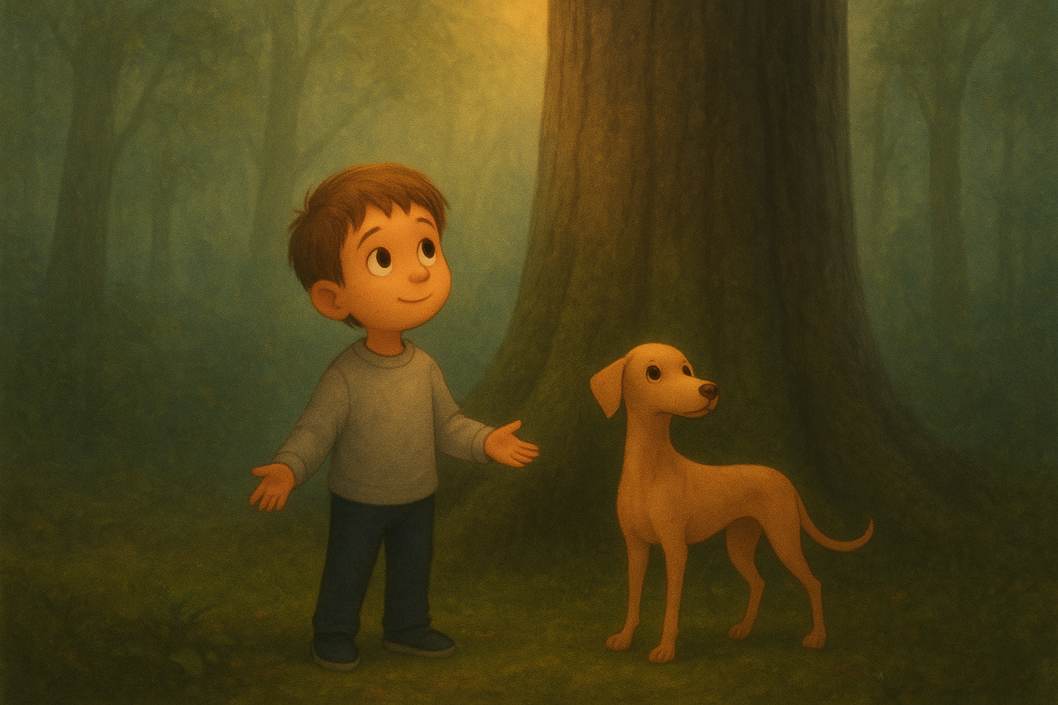 Uma árvore tão alta que parecia abraçar as nuvens. O tronco era largo, coberto de musgos, e galhos imensos se espalhavam como braços abertos.